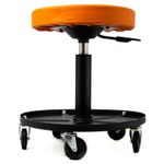 Una de las ventajas es que sus ruedas giratorias permiten moverte en espacios amplios sin levantarte. Además tiene una bandeja metálica que te permite colocar las herramientas al alcance de tu mano.