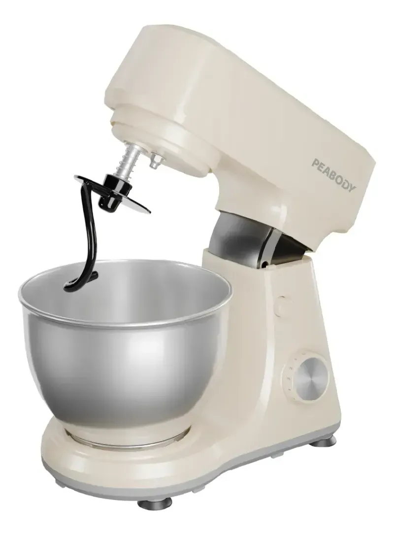 La Batidora de Mesa Peabody PE-BM103I combina potencia, elegancia y practicidad. Ideal para preparar mezclas, masas y cremas con resultados homogéneos gracias a su motor de 400W y sus múltiples velocidades. Características principales: - Potente motor de 400W para un batido uniforme - 5 niveles de velocidad más función turbo - Bowl de acero inoxidable con capacidad de 3,5 litros - Batidores y amasadores metálicos de alta resistencia - Cabezal inclinable que facilita el retiro del bowl - Base antideslizante para mayor estabilidad durante el uso Aplicaciones: Perfecta para preparar tortas, panes, postres, cremas y todo tipo de mezclas de cocina y repostería Contenido de la caja: - Batidora Peabody PE-BM103I - Bowl de acero inoxidable - 2 batidores metálicos - 2 amasadores metálicos - Manual de usuario Ficha técnica: - Marca: Peabody - Línea: Peabody Kitchen - Modelo: PE-BM103I - Modelo alfanumérico: PE-BM103I - Potencia: 400W - Velocidades: 5 + Turbo - Capacidad del bowl: 3,5 L - Material del bowl: Acero inoxidable - Tipo de batidores: Metálicos (batidores y amasadores) - Alimentación: 220V - Frecuencia: 50 Hz - Color: Marfil Acero inoxidable con detalles negros - Garantía: 12 meses