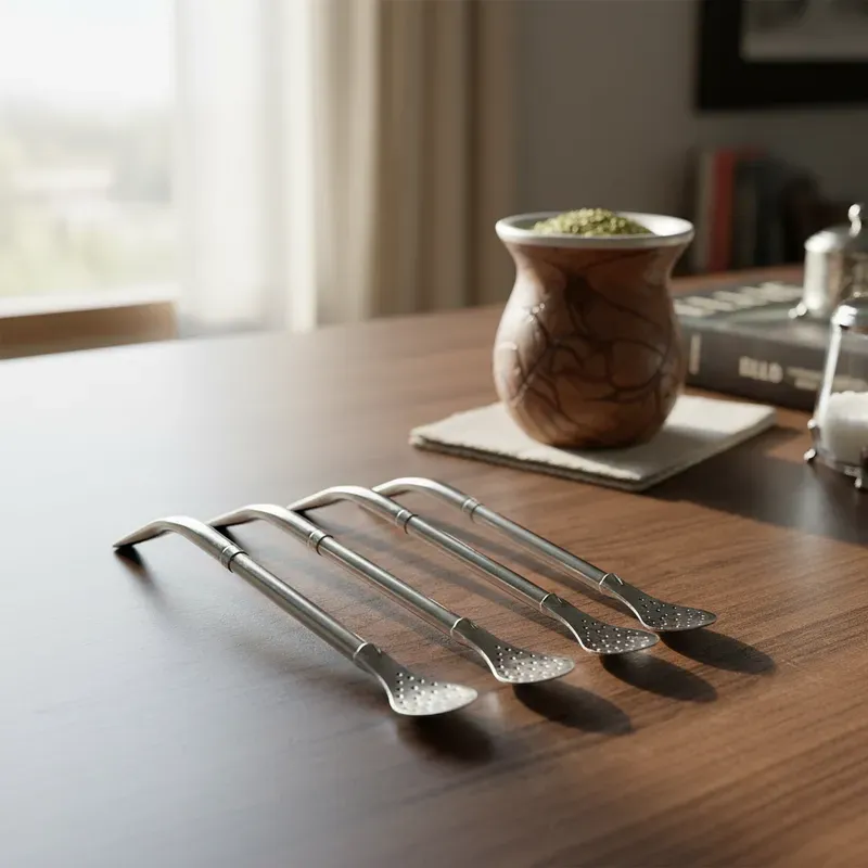 Cada bombilla está elaborada en alpaca de alta calidad, trabajada de forma artesanal para asegurar un acabado duradero y elegante.