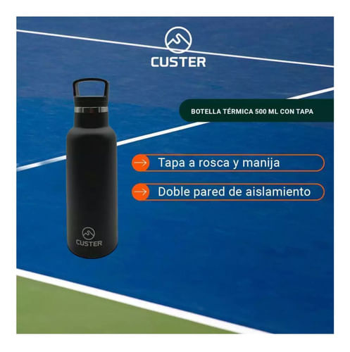 Con su doble pared de aislamiento mantienen las bebidas frías por 8 hs y las calientes por 6 hs. Posee una tapa a rosca con manija para su fácil agarre y transporte.