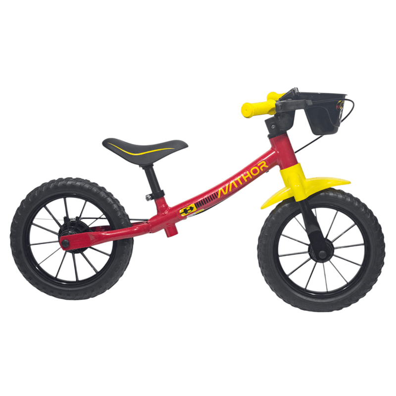 La bicicleta Balance Nathor cuenta con limitador de giro del manillar (garantizando mayor seguridad), neumáticos EVA (más ligeros y antideslizantes), freno de tambor trasero y ajuste de altura del sillín de PU .