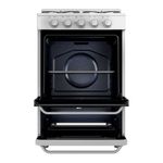 Cocina multigas de 56 cm con 74 litros de capacidad en horno. Color blanco. Cuenta con 2 parrillas superiores de alambrón negro y 1 parrilla en horno cromada. 4 hornallas multitamaños con sensor de flama. Puerta de horno con vidrio panorámico negro. Posee válvula de seguridad, termocontrol en horno y encendido manual con cerillo en horno y hornallas. Sistema de limpieza Easy Clean Pro. Cajón asador rebatible. Incluye kit de instalación, antivuelco y kit de conversión a gas LP. Origen Argentina.