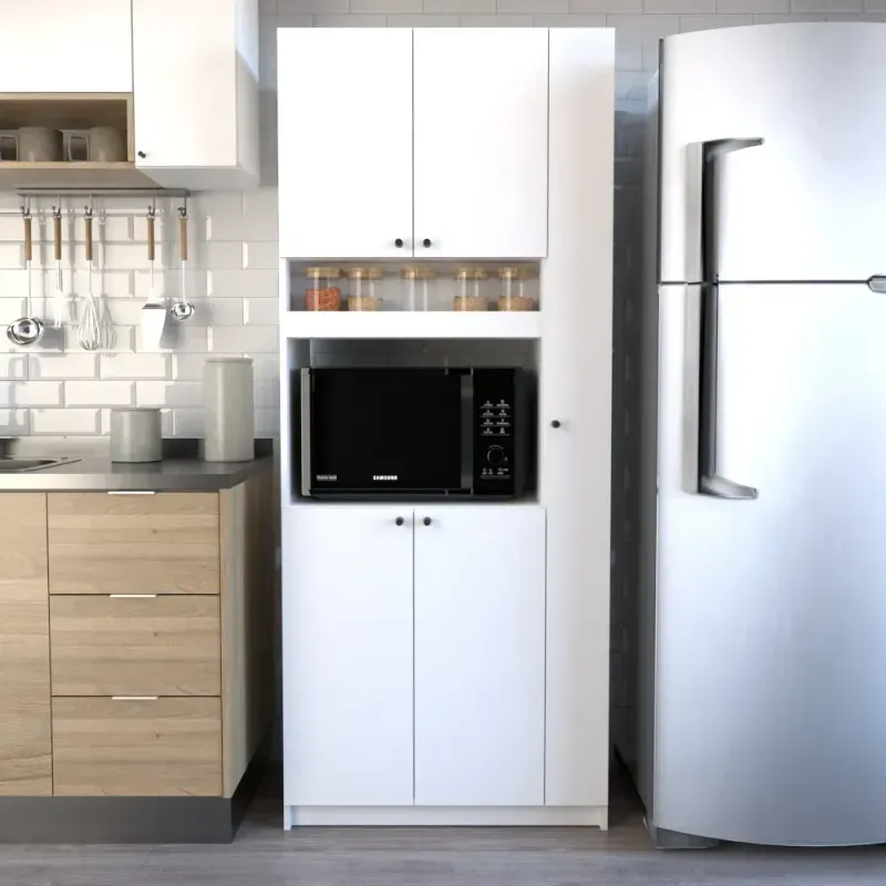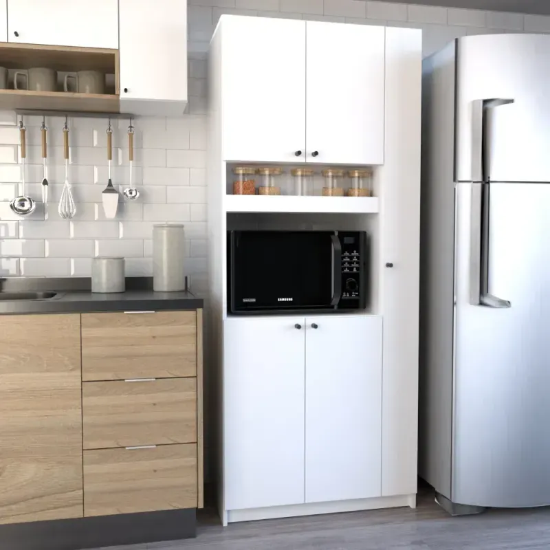 ¡El todoterreno que tu cocina (o cualquier rincón de tu casa) estaba pidiendo! Este mueble no es solo lindo, ¡es una bestia de la organización! Está pensado para que tengas todo a mano y en su lugar. Viene en color blanco neutro que queda bien con todo y se adapta perfecto a cualquier ambiente. * ESCORBERO LATERAL: ¿Escobas, rejillas, trapos y hasta la botella de lavandina? Todo entra. Y lo mejor: ¡queda oculto! * ESTANTES SUPERIORES: Guardás platos, vasos, fuentes, tazas o lo que quieras. ¡Y queda prolijísimo! * ESTANTE ABIERTO CENTRAL: Perfecto para poner el microondas, la cafetera, la freidora, o cualquier electro que uses seguido. ¡Rápido acceso y sin andar abriendo puertas! * COMPARTIMIENTOS INFERIORES: Espacio de sobra para latas, cereales, fideos, snacks, y también para vajilla, ollas o lo que se te ocurra. DETALLES QUE SUMAN: • Bisagras metálicas regulables que duran y no se aflojan con el uso. • Interior 100% revestido para fácil limpieza. • Sistema Minifix (Sin Tornillos a la vista!) • Bases plásticas que aislan el mueble de la humedad del suelo • Tiradores metálicos • Fondo de MDF de 3 mm de espesor • Medidas ideales para espacios chicos: Alto: 1,78 m | Ancho: 0,71 m | Profundidad: 0,36 m Ideal para: • Ideal para: Cocinas, Lavaderos, Quinchos, Monoambientes o cualquier lugar donde quieras poner orden sin perder estilo! • Gran capacidad de almacenamiento (Todo en un mismo lugar)