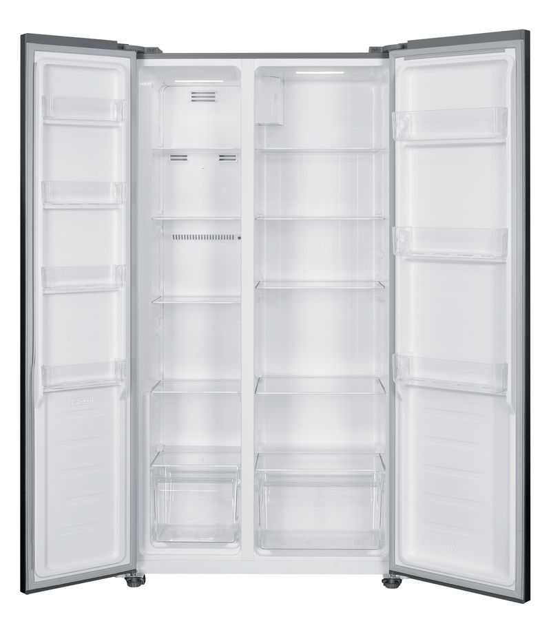 Heladera Boher Boh-sbs55i Side By Side 472lts. Inoxidable Gris Oscuro Volumen/Capacidad: -Volumen bruto total (l) 472 -Volumen bruto del congelador (l) 178 -Volumen neto total (l) 442 -Volumen neto del frigorífico (l) 291 -Volumen neto del congelador (l) 151 Sistema de refrigeración: -Tipo y número de compresores: Hermético / 1 Refrigerante (R600a/R134a): R600a -Sistema de descongelación: No Frost -Sistema de flujo de aire: MultiCool y DynaCool -Agente espumante: C-pentano -Tipo de condensador: Hiden -Clase climática: ST/T -Clasificación del congelador: 4 estrellas -Capacidad de congelación: 10 kg/24 h -Nivel de ruido: dB(A): 43 -Compatible con RoHS/Reach: Sí Características generales: -Corriente (A) 1,4 -Potencia de entrada (vatios) 130 W -Número de puertas: 2 -Sistema de control: Electrónico -Pantalla y panel de control: Pantalla táctil LED -Función de enfriamiento rápido: Sí -Función de congelación rápida: Sí -Función de vacaciones: Sí -Función de refrigerador cerrado: Sí -Alarma de puerta abierta: Sí -Bloqueo para niños: Sí -Tapa superior: No -Puerta reversible: No disponible -Bloqueo de puerta: No disponible -Tipo y material del tirador: Aluminio -Tipo de puerta: Plana -Material y color del panel de la puerta: Metal: Inox -Color del mueble: Gris/Blanco Compartimento frigorífico: -Descongelación No Frost -Iluminación interior (tipo/n.°) LED -Botellero plegable (no disponible) -Cajón para verduras con controlador inteligente de humedad (opcional) -Rejilla ajustable (sin vidrio templado) -Tapa del cajón para verduras (sin vidrio templado) -Material/Número/Color del cajón para verduras: HIPS (1) / Tapa frontal transparente (2 opcionales) -Material/Número/Color del balcón de la puerta: HIPS (3) / Blanco o transparente -Compartimento para mantequilla y queso: HIPS (1) / Tapa transparente -Bandeja para huevos (opcional) -Recipiente para botellas de bebidas (2 L) Compartimento del congelador: -Evaporador con aletas -Descongelación: No Frost -Parrillas ajustables (no incluidas) (vidrio templado) (4 unidades) -Cajones deslizantes (material, número y color): HIPS (1 unidad) / Tapa frontal transparente (2 unidades opcionales) -Balcón de la puerta (material, número y color): PS (4 unidades) / Blanco o transparente -Tiempo de subida de temperatura en caso de corte de suministro eléctrico: 10 h -Fabricador de cubitos de hielo giratorio (opcional) Dimensiones: -Dimensiones del producto (mm): An. 910 x Pr. 590 x Al. 1770 -Dimensiones del paquete (mm): An. 972 x Pr. 630 x Al. 1862 20' / 40' / 40' HC -Cantidad (piezas): 55 -Peso (kg): Neto/Bruto: 75/82
