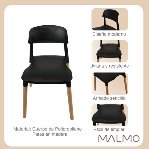 Casa y JardínMueblesPack 6 Sillas De Comedor Milan Paras De Madera Nordicas Asiento Negro Plastico