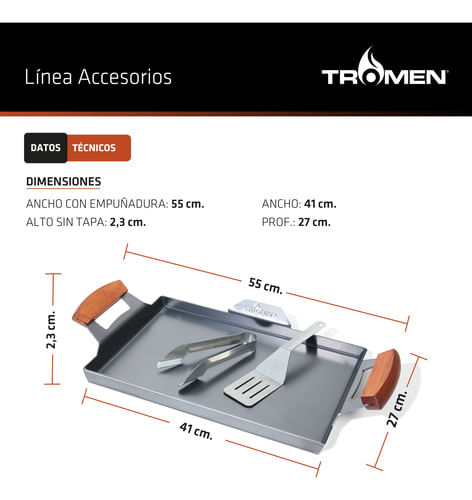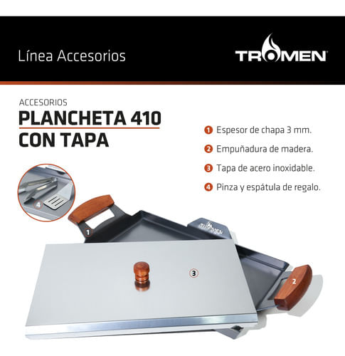 Plancheta 410 Tromen Con Tapa Acero Inoxidable 41 Cm Plancha Gris Oscuro