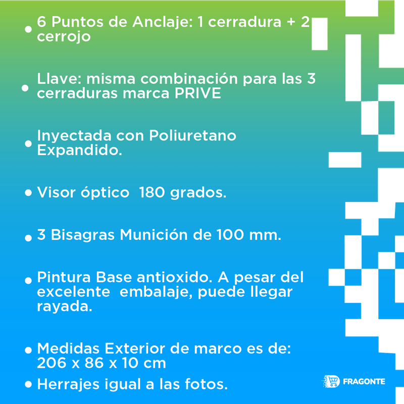 Puerta BLANCA 7510 DERECHA Ciega 3 Cerraduras barral CURVO 75 cm - Puerta De Seguridad
