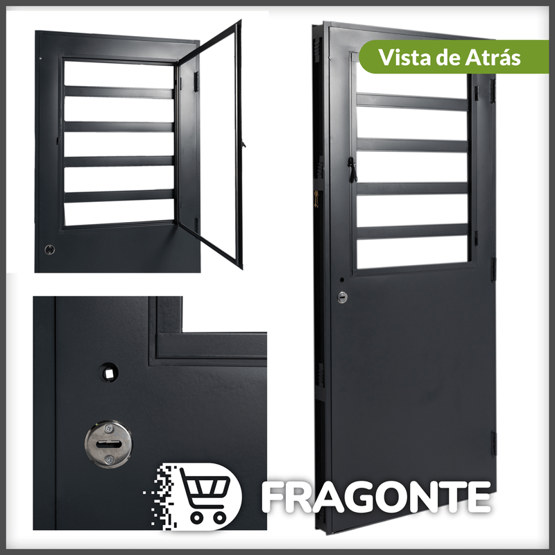 Casa y JardínAberturasPuerta GRIS 3030 IZQUIERDA Media Reja 70X200 LISA Postigo de Abrir
