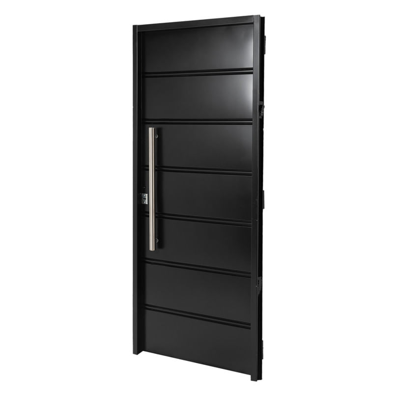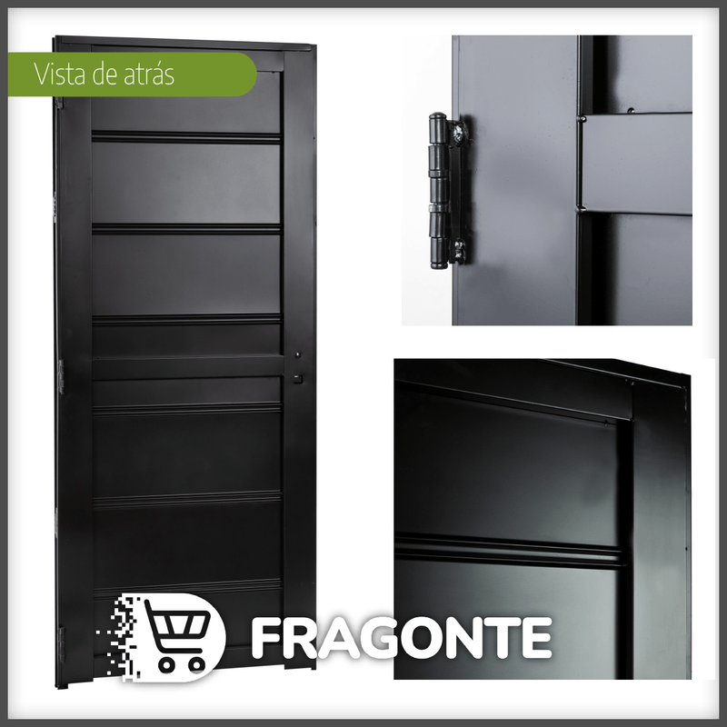 Casa y JardínAberturasPuerta NEGRA 6410 DERECHA Ciega Chapa Simple barral REDONDO 75 cm