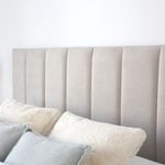 El respaldo posee patas se apoya a la pared y lo sostiene el sommiers.