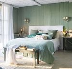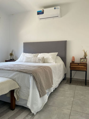 El respaldo posee patas se apoya a la pared y lo sostiene el sommiers.