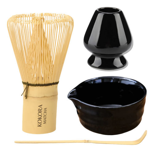 Set Matcha Japonés 4 Piezas Chasen Bowl Chashaku Soporte Negro